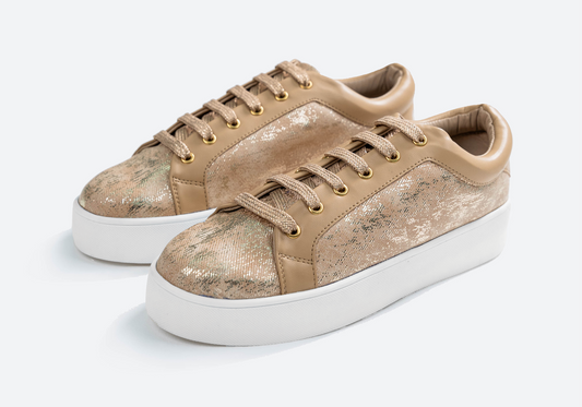 10% OFFLiv – Striking gold abstract foil print sneaker with beige accents