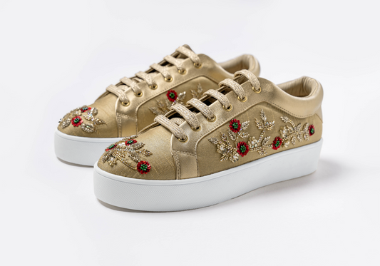 10% OFFBlaze – Gold sneaker with gold and red embroidery